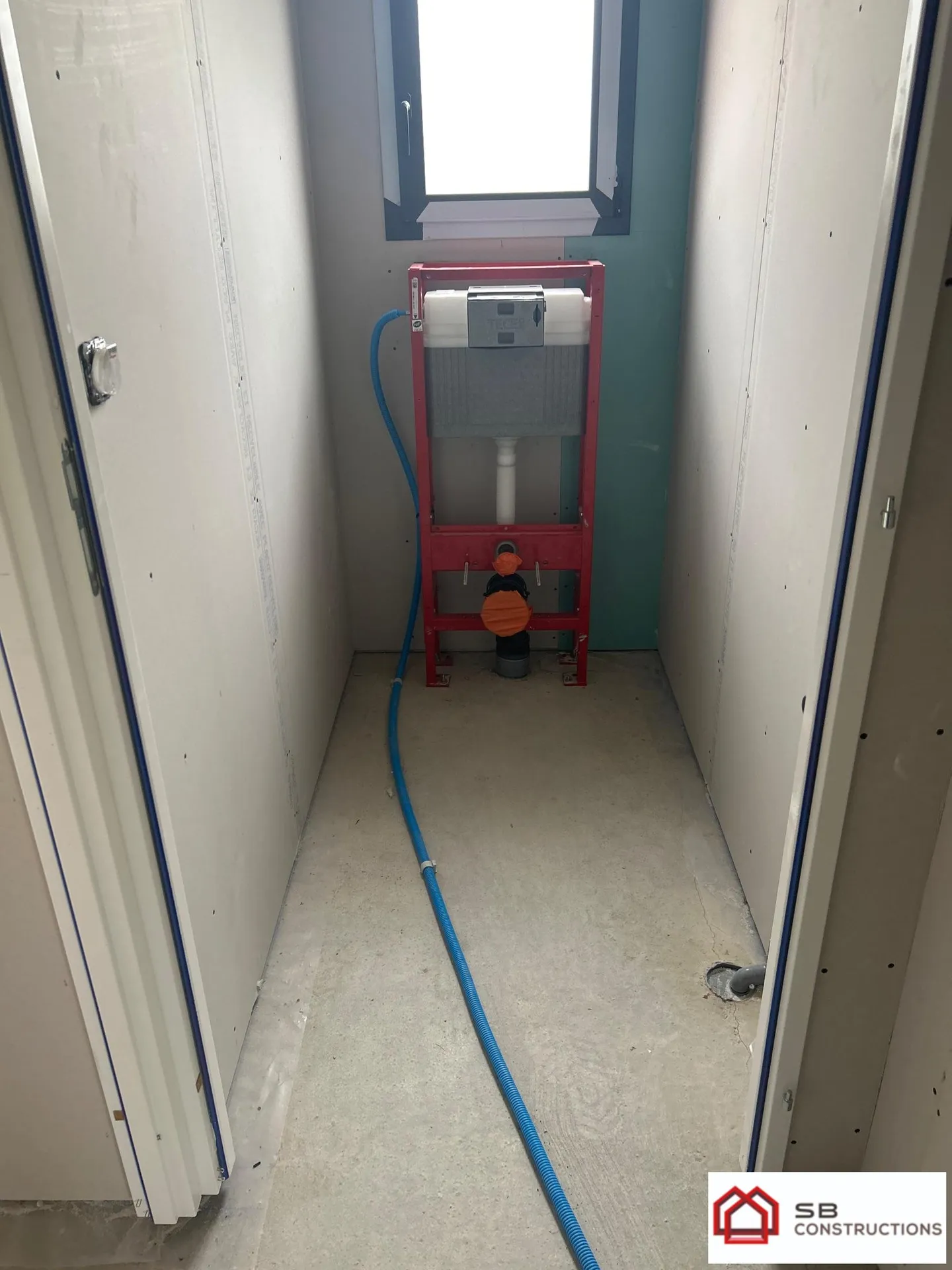 Choisir SB Constructions pour votre villa T4 à Grenade-sur-Garonne, c'est bénéficier d'une expertise complète incluant les travaux de VRD et de clôture. Ce projet comprend la création d'un chemin d'accès empierré, le raccordement au tout-à-l'égout et la mise en place d'un puits d'infiltration pour les eaux pluviales. Nous réalisons également une clôture sur voie avec fondations en béton armé et repose de balustres existantes pour sécuriser votre propriété. À l'intérieur, les prestations incluent des menuiseries aluminium gris anthracite (RAL 7016), une douche à l'italienne avec niche intégrée et des sols en carrelage ou stratifié.